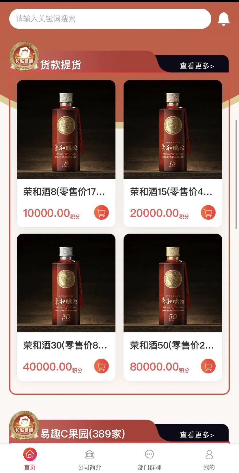 长城易趣拍首页上展示的“荣和烧坊”白酒