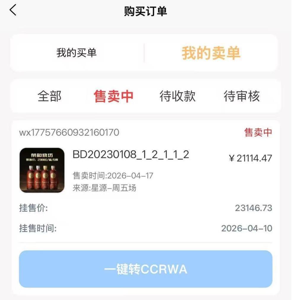 2026年4月23日,一位受害者表示,在自称国企运营的长城易趣拍(也称长城易趣)平台挂拍白酒订单后,其将102万元资金转入该平台运营方(中国长城计算机进出口公司,本文简称长城计算机进出口)指定的境外交易所“亚洲数字资产交易所”兑换代币CCRWA,以谋取未来升值。然而,资金再也无法取出。